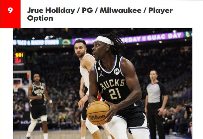 杰伦-布朗:缺乏出色的控球能力,可能是唯一阻止他成为超巨的因素。目前他正在和凯尔特人谈论超级顶薪续约,预计很快会告别这份自由球员名单,并创造新的合同纪录(最高能签5年2.95亿)。布朗能在任何一个夜晚拿下30分,是联盟最好的侧翼之一。