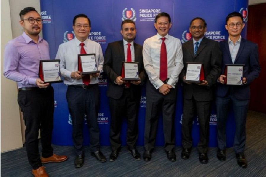 新加坡商业事务局日前在广东民大厦举行的仪式上,表扬星展银行、华侨银行、大华银行、滨海湾金沙赌场,以及圣淘沙名胜世界赌场的在打击洗黑钱和恐怖主义融资上的贡献。