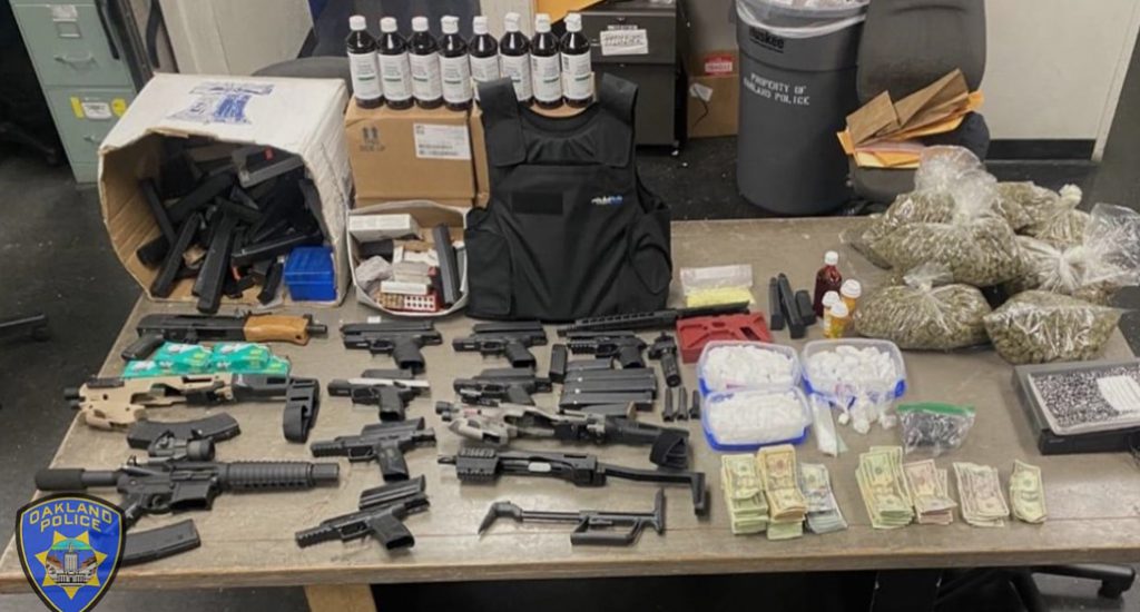 加利福尼亚州奥克兰对一家非法博彩公司的突袭导致警方没收了大量武器、弹药、超过 21,000 美元的现金、价值 76,000 美元的可疑毒品和 18 台赌博机。