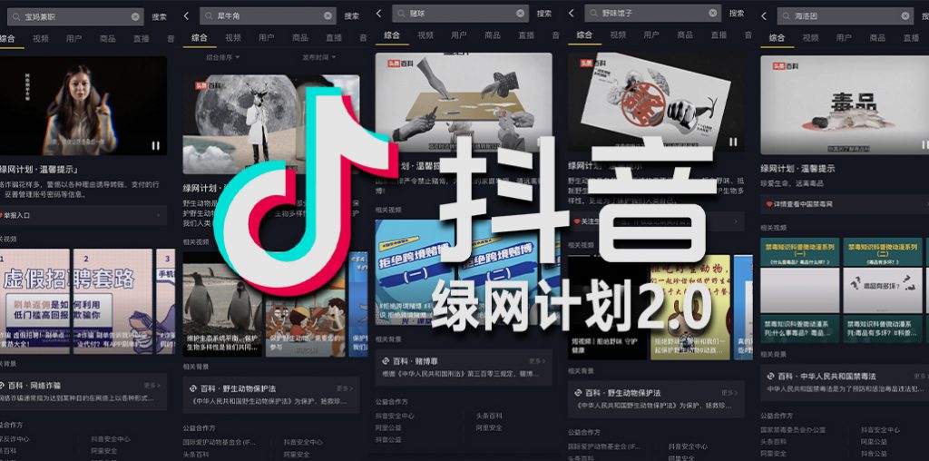 抖音联合阿里巴巴发起“绿网计划2.0”之后,进一步将项目覆盖的领域扩大,新增“防范网络诈骗”“人身公共安全”“个人信息安全”“禁毒”“禁赌”及“拒食野味”等多个领域,希望能在更多方向上对用户进行公益科普教育。