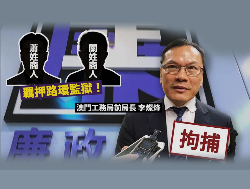 继周焯华因涉网博和洗黑钱等罪名被补,令澳门贵宾厅业务覆亡,这次轮到澳门地产界卷入重大案件,更牵涉多名澳门前局长及著名商人,此刻澳门正掀起一股整顿风暴。澳门廉政公署今早(24日)公布,在侦查一宗贪污贿赂案件中,揭发土地工务运输局前领导涉嫌亲身及透过亲属收受商人巨额利益,在任职期间滥用职权,不法审批多宗建筑项目申请,目前身在内地并已被公安拘捕,将移送回澳门受审。据悉,该前领导为于2014年至2020年「回巢」公职任澳门工务局局长的李灿烽 。另有消息指出,案件涉及多8名商人,当中包括一名姓关的商人,以及一名姓萧卫星赌场负责人,据悉萧关二人正于路环被羁押中。而这宗贿赂大案,初步相信疑涉及三个项目。至于澳门检察院同日下午表示,涉案嫌犯共有8人,其中3人包括李灿烽在内采取羁押措施。涉及的四宗罪各最高刑期为3至8年。