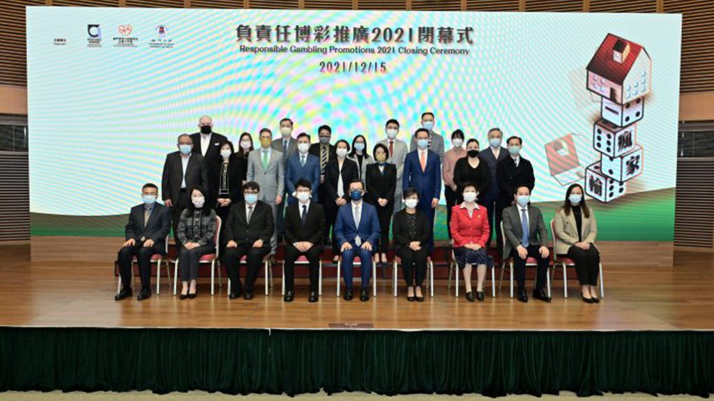 由社会工作局、博彩监察协调局及澳门大学博彩研究所合办的「负责任博彩推广2021 一『疯』家『输』」(Lost Control, Lose Family) 闭幕式于12月15日上午在澳门科学馆会议厅举行。