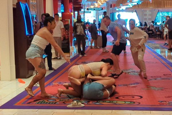 拉斯维加斯大道上周发生4女大乱斗事件,24岁辣模丹妮尔·佩图西洛(Danielle Pertusiello)与闺蜜离开永利度假村安可酒店(Encore at Wynn Las Vegas)的泳池时,突遭另外2女从后方攻击后脑,双方互相拉扯导致4女身上衣服几乎被扯光,混乱画面被人拍下在网络上流传,而造成争执的原因疑似与抢男人有关。