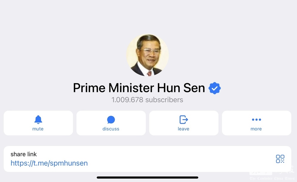 洪森总理于去年5月初开通Telegram频道,截至今年8月2日,粉丝数量达100万9678人。