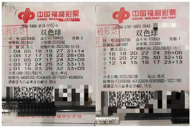 8月14日上午,双色球第2023091期大奖得主来自温州的孟先生和第2023092期大奖得主金华的肖先生一同来到省福彩中心兑领大奖。