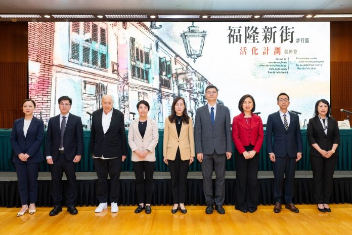 「福隆新街步行区计划」昨天(20日)举行发佈会,由澳门社会文化司司长欧阳瑜、澳门文化局局长梁惠敏、澳门市政署管理委员会代主席罗志坚、澳门交通局交通规划及建设厅代厅长源秋华、澳门治安警察局策划行动厅代厅长源剑锋、永利澳门总裁陈志玲及市场营销总裁邹文瑜等介绍详情。