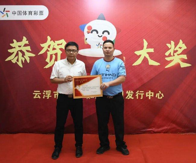 9月1日上午,张先生在家人、朋友的陪同下,现身云浮市体彩中心兑奖。云浮市文化广电旅游体育局党组书记、局长黄小涧为中奖者颁奖。
