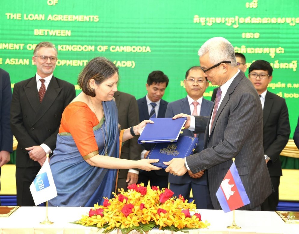 副总理兼财经部长翁本莫尼洛同亚行柬埔寨国家主任乔萨纳. 瓦玛(Jyotsana Varma)于26日签署贷款协议。