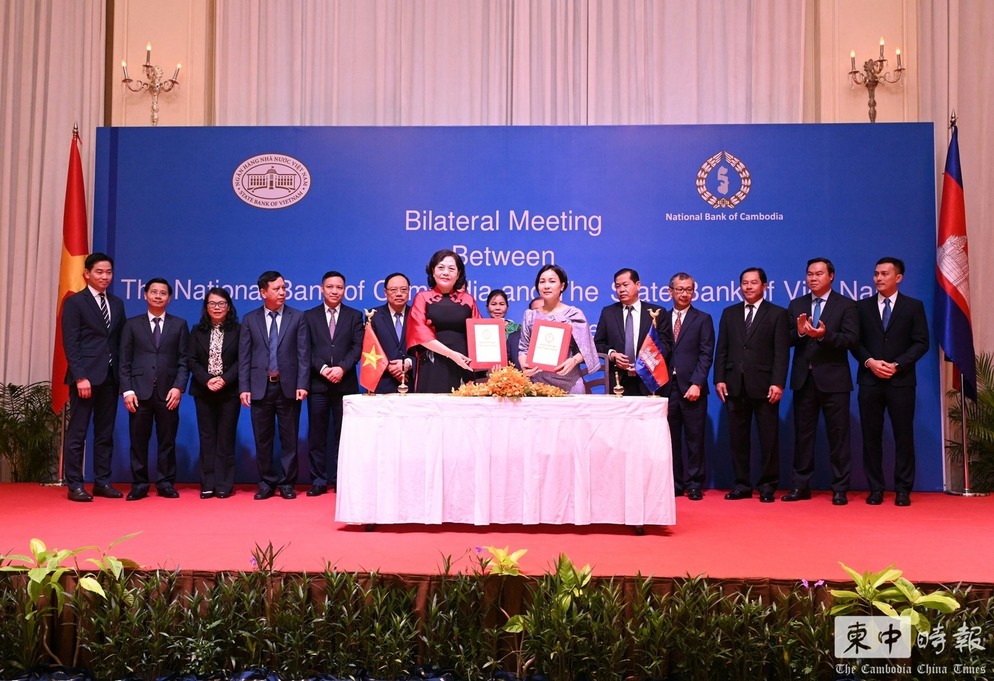 柬埔寨国家银行和越南中央银行于3日在暹粒举行双边会议时,同时推介跨境电子支付服务,由柬国银行长谢丝蕾和越南央行行长阮氏红出席见证。