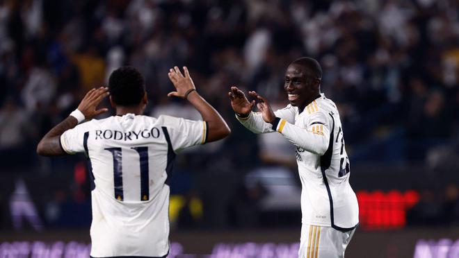 第29分钟,皇马再次踢出默契配合,贝林厄姆中路分球,卡瓦哈尔低平球扫到门前,门迪脚后跟一磕,皮球应声入网,皇马10分钟内连进2球逆转比分。