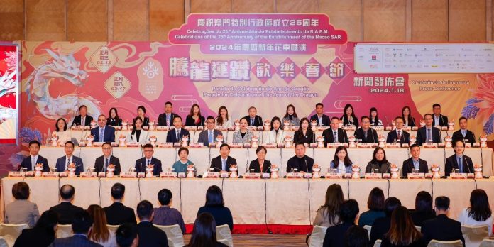 澳门旅游局一系列贺岁活动将于农曆年初三(2月12日)及年初八(2月17日)分别在中区及北区上演,呈献花车巡游、文艺表演及花车展览等。今年的花车汇演与「欢乐春节─2024年龙腾舞跃贺新春」社区巡演及「欢乐春节─龙马精神烟花汇演」,三项活动同获国家文化和旅游部列入「欢乐春节」活动框架。