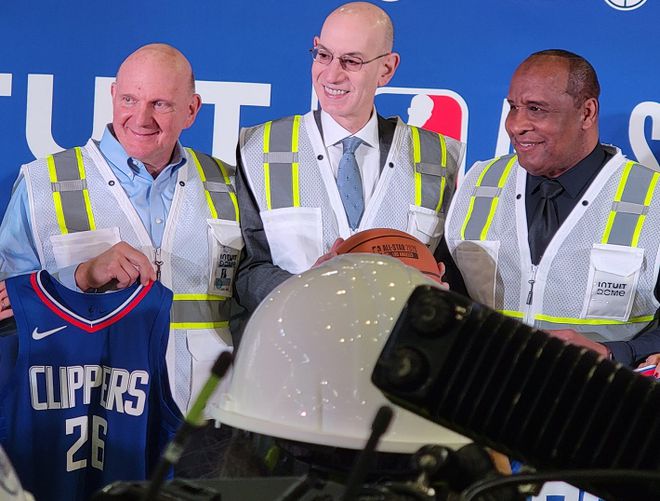 快船新球馆Jntuit Dome已经封顶,NBA总裁穿着马甲盛装出席了新球馆的相关活动,并宣布一项重大决定:2026年全明星周末将在快船的新球馆Jntuit Dome进行。快船老板鲍尔默也在这场活动中接受采访时表示:球队将在今年6月份正式搬进新球馆,新球馆的首场比赛将在8月份进行。万事俱备,只欠东风,希望快船队本赛季能够全力以赴拿下总冠军,也算是为新球馆带去一件“镇馆之宝”了。球迷朋友们,你们觉得快船队本赛季能否夺得NBA总冠军呢?来给我留言评论探讨一下吧。