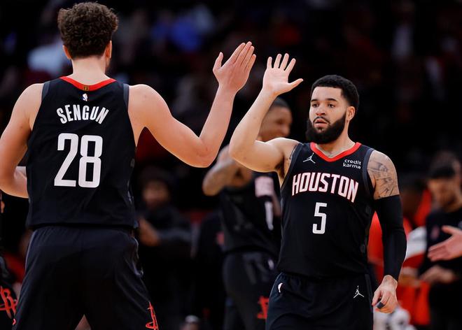 本场比赛中,火箭的先发中锋阿尔佩伦-(Alperen Sengun)依然保持了相当出色的竞技状态。他全场出场33分37秒,投篮17中11,三分线外2中0,罚球10中8,以超高的效率拿下了30分8篮板4助攻3抢断1盖帽的全面数据,其中还包括了4个前场篮板,正负值也是达到了+17。申京在进攻端的效率实在是相当突出,在进攻端简直是予取予求,展现出了惊人的内线统治力,而且他在组织和串联方面的表现也是相当突出的,而且他在防守端的表现也是超出了大家的预期。至少从本场比赛中的情况来看,申京简直是攻守兼备,有着非常全面的个人能力,他也为球队的这场关键胜利做出了不小的贡献。