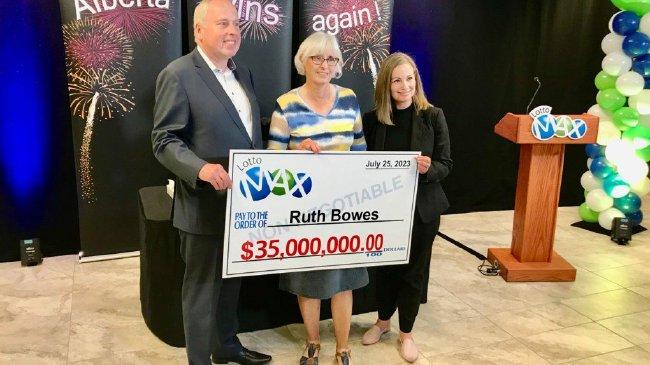 据了解,这位幸运的大奖得主名叫露丝-鲍斯 (Ruth Bowes) ,来自艾伯塔省的埃德蒙顿。去年7月25日,Lotto Max彩票玩法头奖累积到7000万加元,而露丝购买的彩票成功匹配了所有数字,最终收获3500万大奖!露丝表示,自己并不是经常买彩票,但却时常幻想一夜暴富,所以偶尔就会买上几张,没想到幸运真的降临!