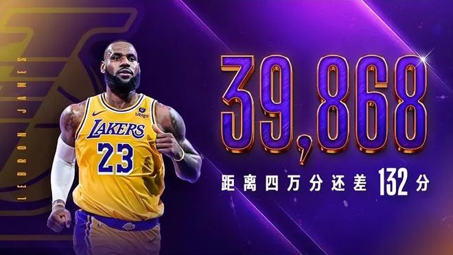 詹姆斯的NBA生涯常规赛4万分就在眼前,放眼整个职业体育界,这也是一项相当炸裂的纪录。如今老詹的总得分是39868分,只差132分就能突破4万。按照本赛季场均24.8分来计算,那也只需要最多6场比赛而已。倘若老詹稍微状态好一点,把场均数据提升到26.5分,那只需要5场比赛就可以打破。