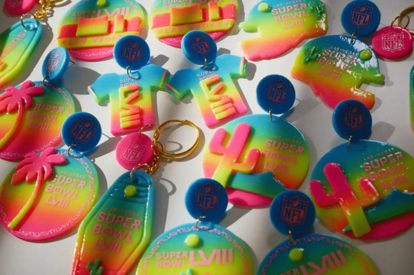 Walanya Vongsvirates花了近一年的时间,为第58届超级杯比赛制作了约1,000对受拉斯维加斯启发的手工耳环和钥匙圈。