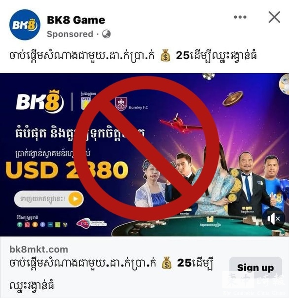 近来网络平台涌现教唆民众赌博的网赌广告,尤其是柬埔寨年轻人钟爱的脸书,此乱象已严重破坏公共安全秩序和民众生活,引起执法部门的关注和矢言将依法严打。
