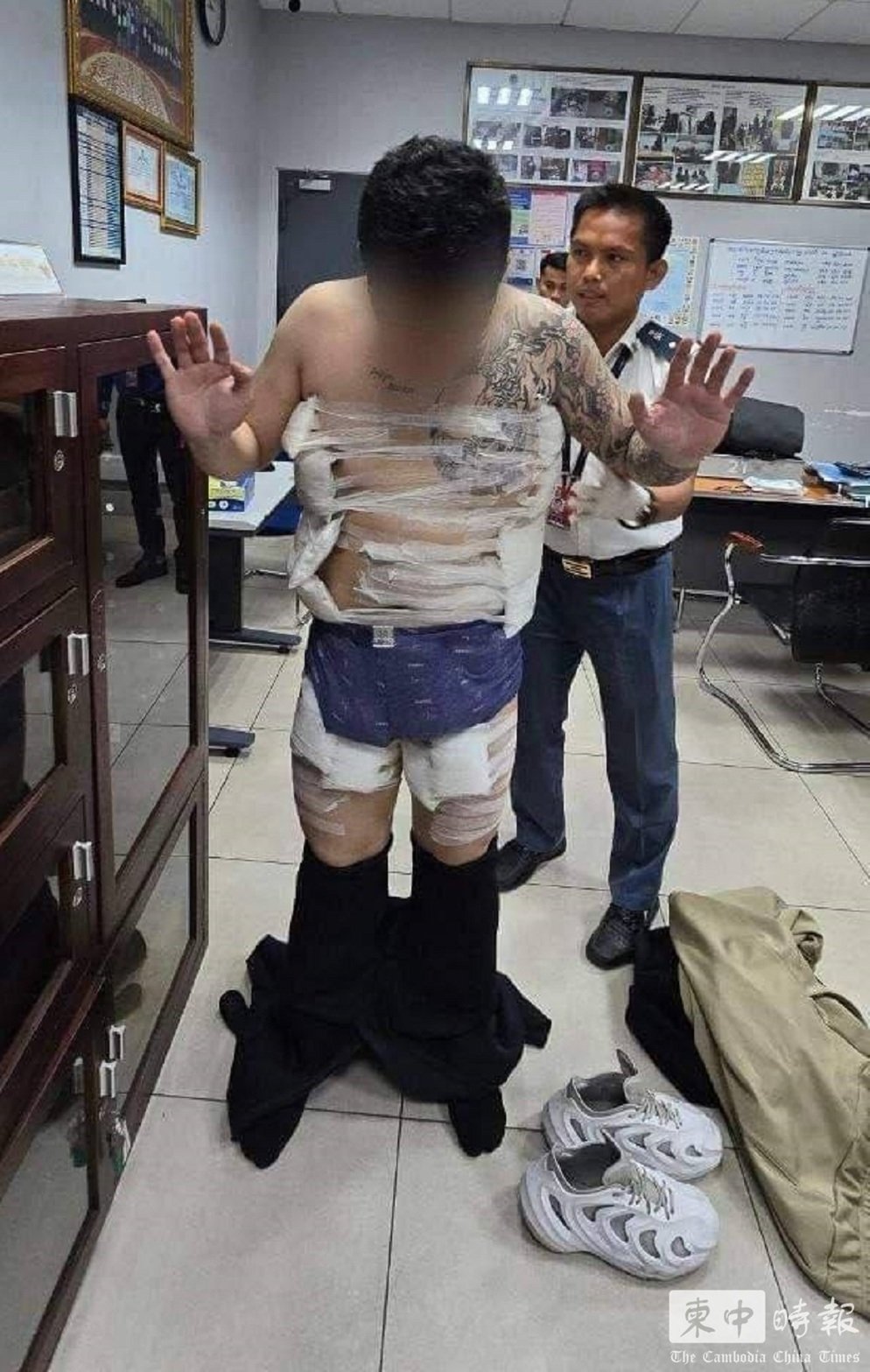 一名台湾男子将近5公斤毒品绑在身上,企图运毒出境,最终在金边国际机场遭警方识破,当场被捕。