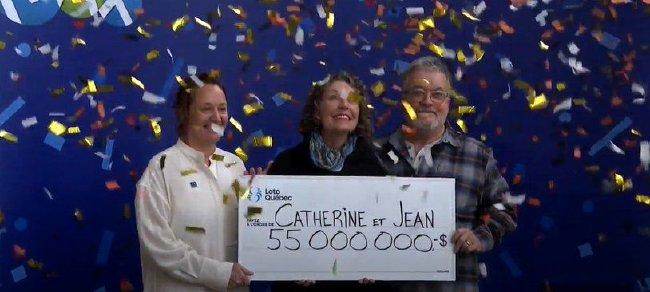 吉恩-拉罗克 (Jean Laroque) 和他的伴侣凯瑟琳-恩尼斯 (Catherine Ennis) 是一对退休的夫妇,他们住在魁北克。在10月31日晚,他们命中了Lotto Max彩票高达5500万加元的巨奖(约合人民币2.9亿多元)。