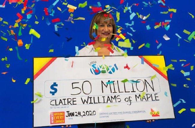 这位女士名叫克莱尔-威廉姆斯(Claire Williams),来自安大略省枫树镇,她称自己是在开奖后的第二天早上得知中奖的,当时她看到网站上的号码时简直不敢置信,看着那些号码一个接一个的与手中的彩票一一匹配上的时候,她简直高兴的要疯了,当时就从椅子上摔了下来。