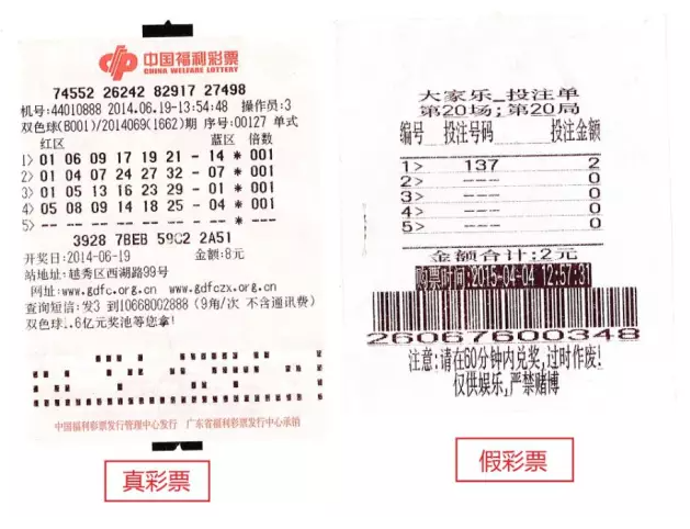 从彩票的销售形式来看,目前我国大多数地区能够买到的主要包括:以双色球、超级大乐透为代表的电脑型彩票(简称电脑票),以及福彩刮刮乐与体彩顶呱刮构成的即开型彩票(简称即开票)。要辨别真假,对于不同彩票,我们需要注意的地方不同: