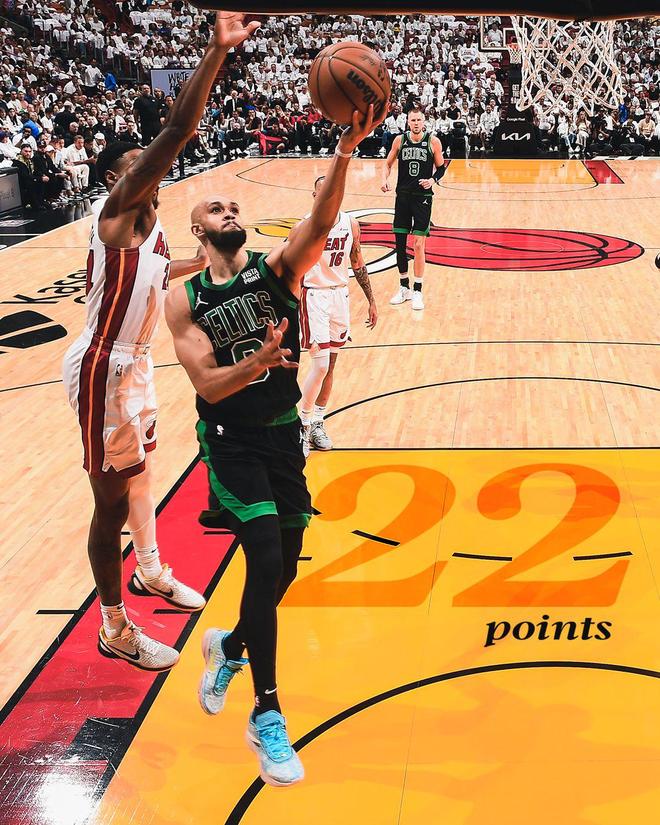 热火没有放弃,第四节打出反击高潮,轰出19-10,不过,此后,凯尔特人还是稳住局面,还剩49.5秒,怀特三分命中,杀死比赛,他也创造生涯新高。