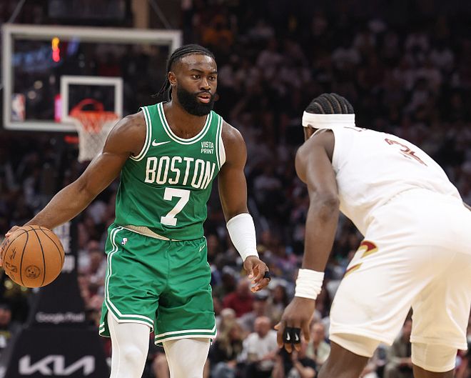 塔图姆半场14中8得到23分5板3助攻,布朗8中4得到11分4板,霍勒迪6中4得到10分5板5助攻3抢断,骑士方面斯特鲁斯7中5(三分6中5)得到15分1板,勒韦尔11中6得到12分3板2助攻,加兰11中4得到11分2板5助攻。