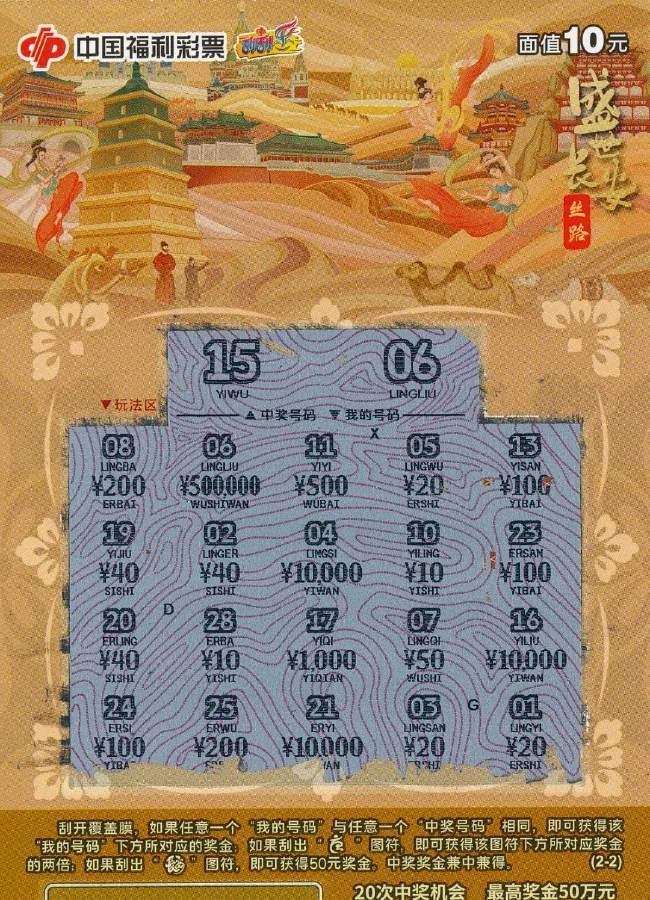 中奖彩票换彩票,为了凑个整,李女士刮中“盛世长安”50万元。她开始以为中了5万,没想到是更大的惊喜。