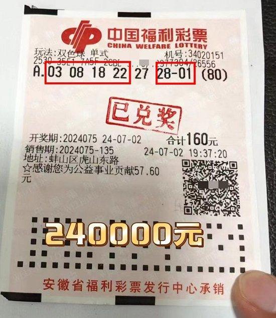 7月3日上午,一家三口喜气洋洋的来到蚌埠市福彩中心领取属于他们的幸运大奖。7月2日晚,双色球第2024075期开奖,该幸运彩民以一张160元面值的双色球单式倍投票,喜揽80注三等奖,奖金共计24万元整。