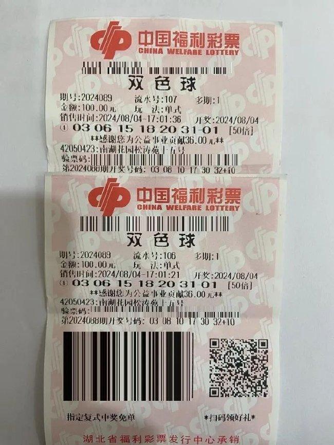 8月6日上午,俩人一起走进湖北福彩武汉江南管理站兑奖处。洪先生把两张彩票从钱包中掏出来,递给工作人员。经查验,洪先生的两张双色球彩票中得总奖金30万元。