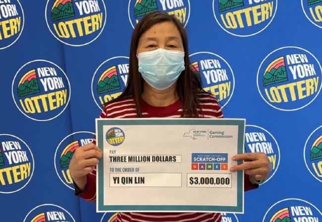 家住纽约市布鲁克林的林易琴(Yiqin Lin),在史泰登岛海兰大道(Hylan Blvd)一家杂货店Kings Hylan C-Store购买”极限现金”(Xtreme Cash)刮刮乐彩票,赢得300万美元大奖。按照纽约州相关规定,她一次领取大奖到手奖金为132万美元。7月14日,林易琴现身纽约州彩票中心领取了奖金,并简单接受媒体采访。