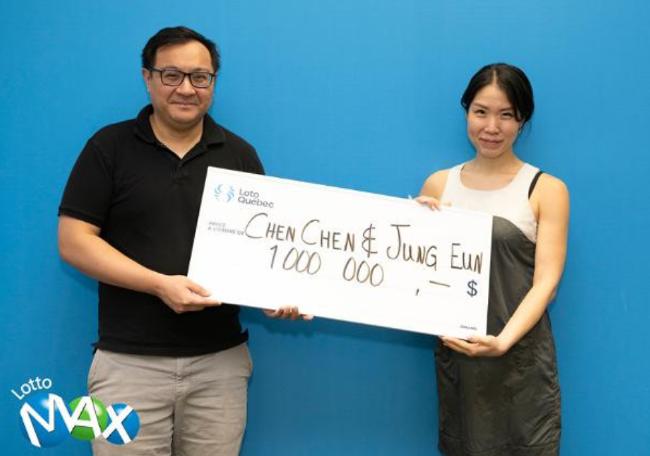 Jung Eun Han说,当她意识到中了Lotto Max玩法大奖时,一时都惊呆了。这对夫妇不得不数着数字中的零数,才意识到自己中了100万加元。