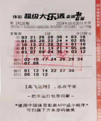 10月30日,体彩大乐透第24126期开奖,当期全国中出5注一等奖,其中1注花落河南安阳,中奖彩票为体彩大乐透88元套餐票,单票收获奖金1003万元。中出这张大乐透套餐票一等奖的体彩实体店位于河南省安阳市内黄县。