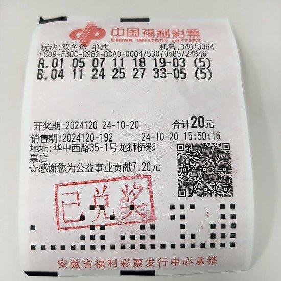 10月20日晚,福彩双色球2024120期开奖,位于安庆市华中西路35-1号的福彩第34070064号投注站传来喜讯,一位彩民凭借守号投注的方式,幸运地中得当期二等奖5注,奖金总计41万余元!