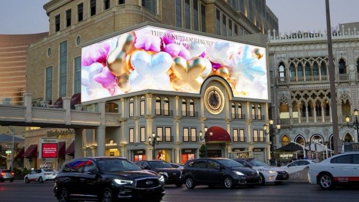 钟楼是威尼斯人酒店的标志性建筑之一。近日,该物业在钟楼下方、临近拉斯维加斯大道的区域打造了一块全新的裸眼3D大屏,不仅为威尼斯人酒店增添了独特的科技魅力,还为拉斯维加斯大道带来了全新的视觉体验。