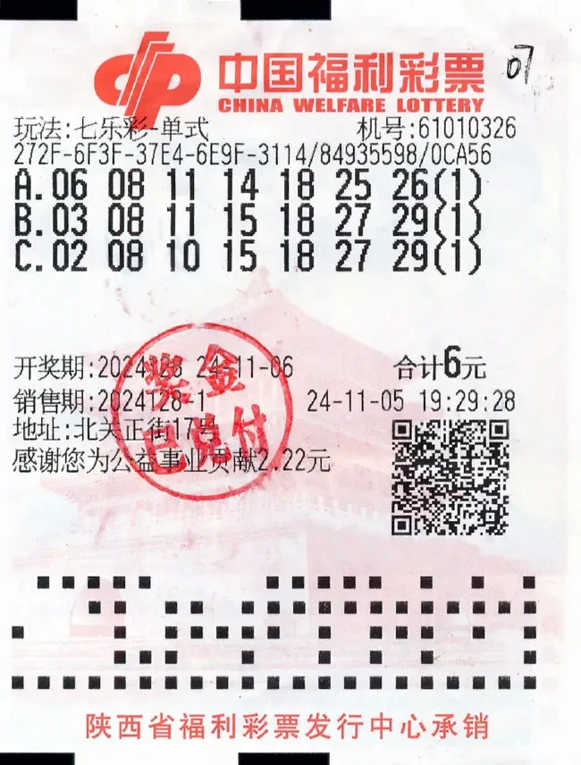 11月5日19点29分,刘女士再次守号。11月6日,七乐彩第2024128期开奖,开出一等奖4注,单注29万元。刘女士守号票的第二注号码中了一等奖,第三注中了五等奖50元,中得总奖金293280元。