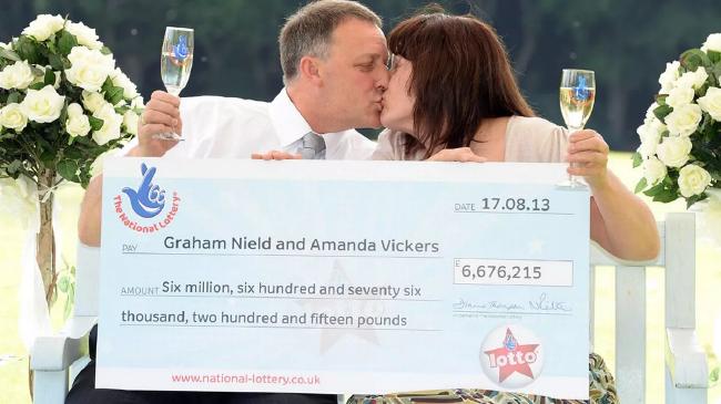 大奖得主名叫阿曼达(Amanda)和格雷厄姆-尼尔德(Graham Nield),来自英格兰西约克郡的韦克菲尔德,他们在2013年命中国家彩票(National Lottery)667万英镑大奖,而中奖之前两人都是当地一家地毯厂的工人。领奖后两人双双辞去工作,并举行了婚礼,尽管他们已是富翁,但还是选择了当地的橄榄球俱乐部作为婚宴场地。