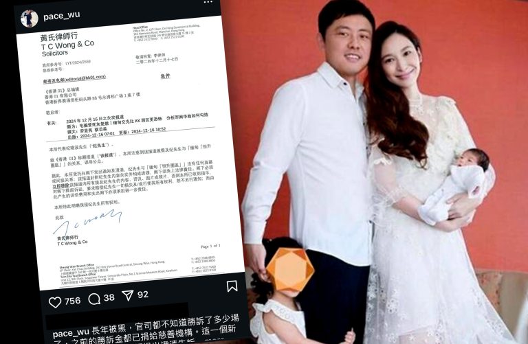被内地当局通缉的纪晓波,之前有报导指曾在日本东京现身,但行踪始终成谜。而为纪晓波生了4个孩子、但未有结婚的吴佩慈,昨天就再替男友出头,在IG上发佈帖文,除指有关纪晓波涉及诈骗园区的报导内容不实并构成诽谤,还晒出律师信,要求所涉传媒立即移除相关报导内提及纪晓波的内容和图片,否则将会提告。