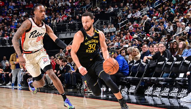 末节手感出色的希尔德带着第二阵容打,库里先打了1分钟被换下,库里下场后勇士继续拉开差距到16分,库里休息了3分钟再度登场终于命中本场比赛第二个三分球,库里得分也上双了,库里连续打铁活塞反击疯狂追分,库里14.2秒两罚全中,最后时刻坎宁安两罚,第一罚命中,第二罚故意不中自己拿到前场篮板,比斯利绝平三分不中活塞才输球。