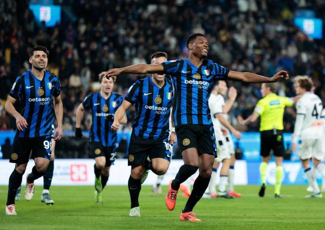 1月3日,意大利超级杯半决赛,国米对阵亚特兰大。凭借后卫邓弗里斯的倒勾+世界波,国米最终2-0击败对手,连续7次笑傲蓝黑德比,也连续4年杀入了意大利超级杯的决赛。