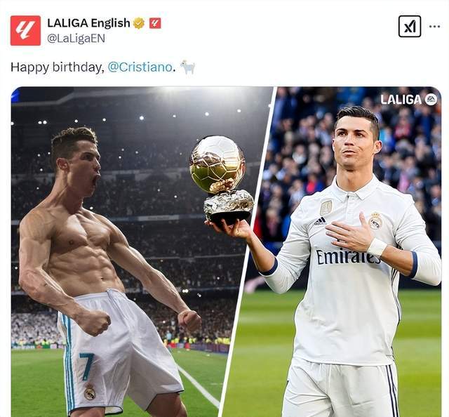 当地时间2月5日凌晨0点,皇马官方率先发文,为C罗送上生日祝福: