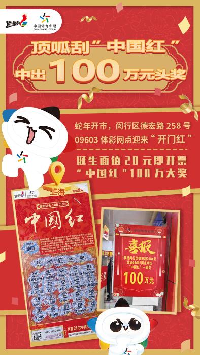 蛇年刚开市,位于上海闵行区德宏路2584号09603体彩网点就迎来“开门红”——面值20元的即开票“中国红”100万大奖被该网点的购彩者收入囊中。