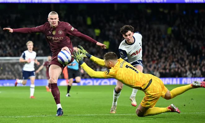 北京时间2月27日凌晨,英超第27轮一场焦点战,由热刺主场迎战曼城。上半场,多库助攻哈兰德复出即破门,萨维尼奥错失绝妙单刀机会,曼城一球领先热刺。下半场,哈兰德补时破门被吹。最终,1-0击败热刺,积47分重返积分榜第四。