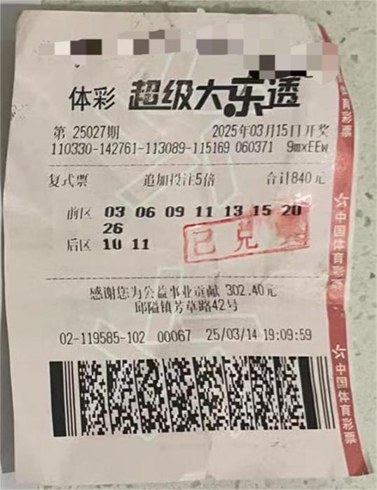 彩票 | 男子840元小复式中大乐透139万:已经追了3个月了