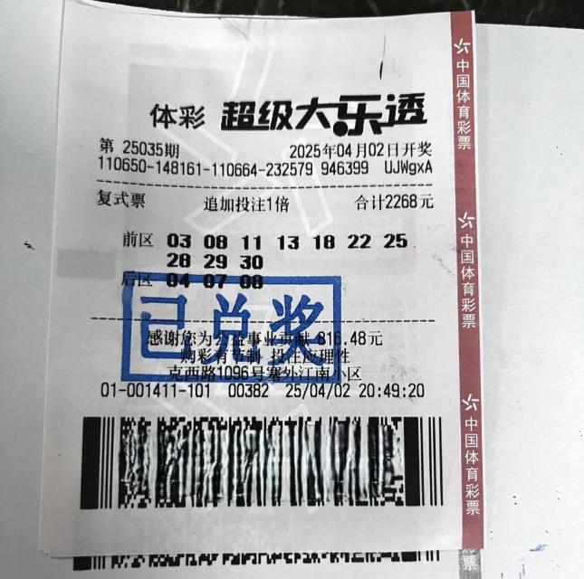 在乌鲁木齐市克西路1096号塞外江南小区,一家不起眼的体彩店静静地见证着无数购彩者的期待与惊喜。2025年4月2日,当体彩大乐透第25035期开奖号码揭晓时,这家店面再次沸腾——一位幸运儿凭借追加投注,将1800万元大奖揽入怀中,并于4月3日完成兑奖。而早在2018年7月,这里就曾诞生过一注1063万元大奖。两次千万级大奖的降临,让这家普通彩票店,成为无数购彩者心中的“幸运地标”。