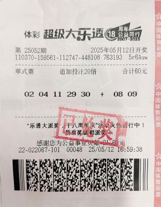 彩票 | 憾失大乐透1.8亿巨奖!男子擒20倍追加2等368万