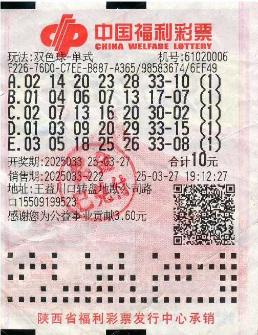 3月27日19点12分,中奖彩票售出于王益川口转盘地勘公司路口的福彩第61020006号投注站。当时,张师傅机选了5注单式票,其中第五注中得一等奖621万元。