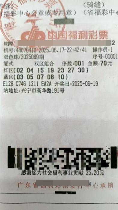6月19日,中国福利彩票双色球第2025069期开奖,当期全国共开出一等奖3注,其中1注花落梅州兴宁高华路191号44070410福彩销售站点,中奖彩票为一张1倍7+5复式票,共中得一等奖1注、二等奖4注,中奖总奖金约1119万元。