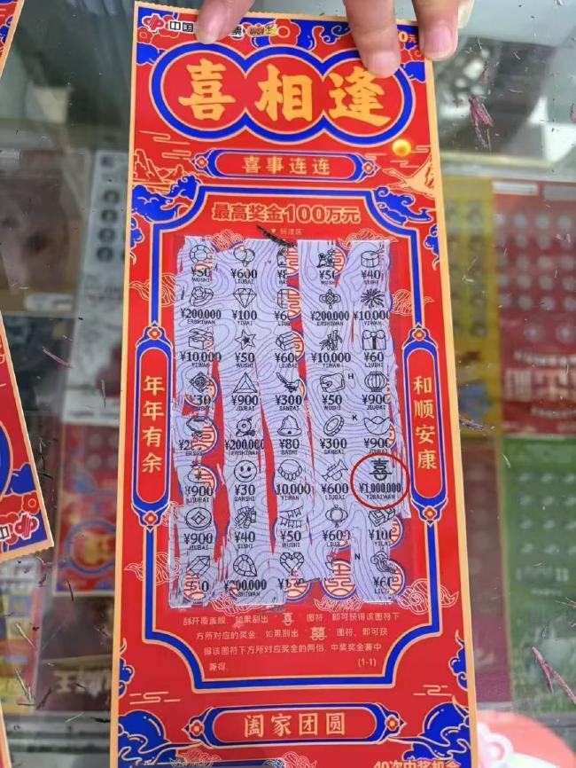 据投注站业主回忆,中奖女士当时因大雨进店避雨,主动询问:“店里有刮刮乐吗?躲雨正好玩一下。”销售员推荐了正在做促销活动的“喜相逢”系列彩票。该女士随即购买了一整本(面值30元/张)的“喜相逢”即开票。令人惊喜的是,仅仅刮开第六张,就看到了票面上“喜”字图符下方对应的奖金标识“1000000”!