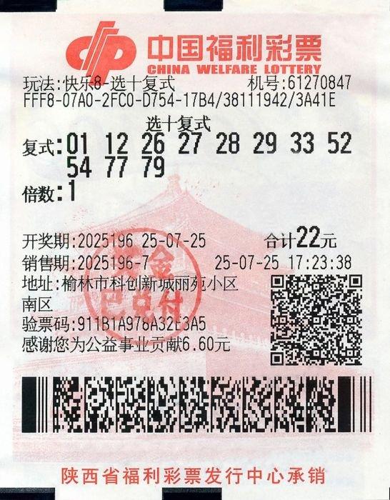 7月25日晚,福彩快乐8第2025196期开奖结果出炉,全国唯一一注“选十中十”大奖花落榆林横山区!